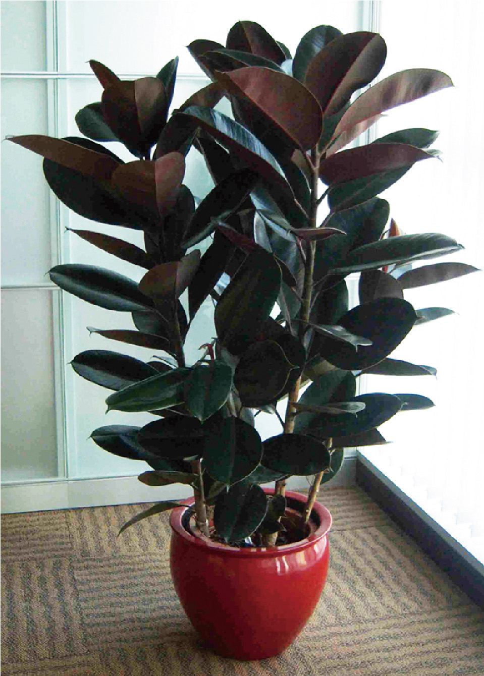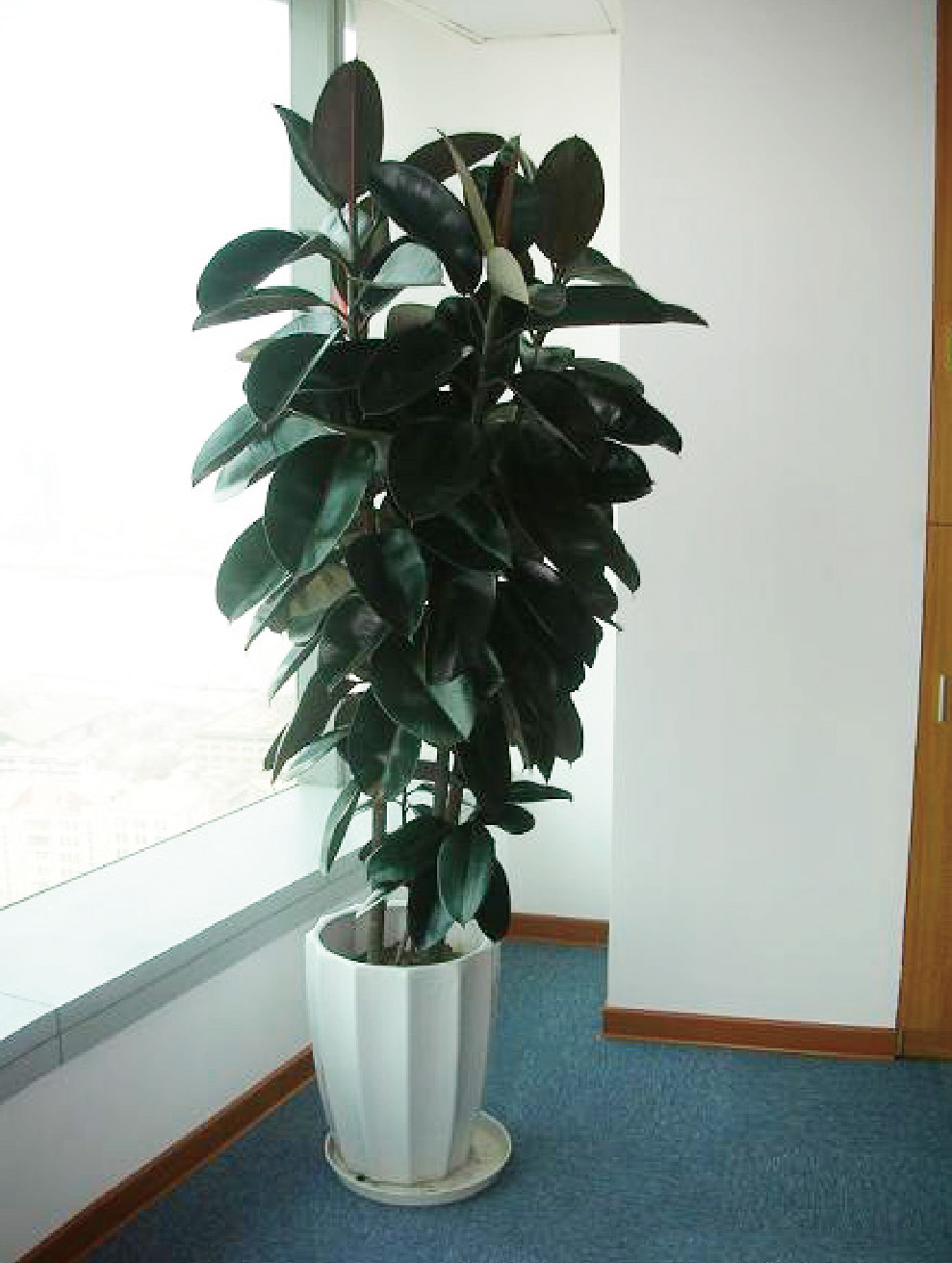 橡皮树叶大光亮,四季常青,是大型的耐阴观叶植物。盆栽是点缀宾馆堂和家庭居室的好材料,南方常配置于建筑物前、花坛中心和道路两侧等处。
